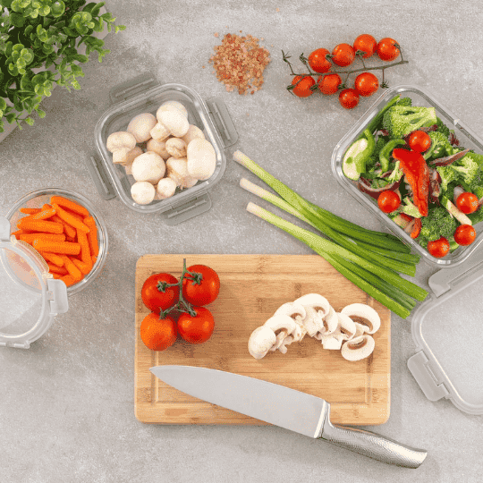 This storage set has made my kitchen so much more organized. I use them daily for lunches and snacks. No plastic smell, and the glass keeps food fresh longer.